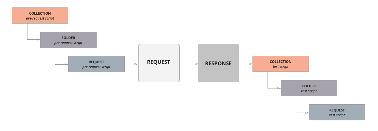 You can add pre-request and test scripts to a collection, a folder, a request within a collection, or a request not saved to a collection.